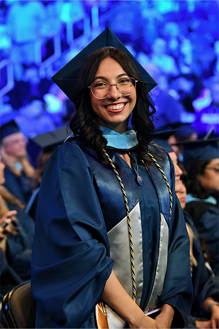 Please arrive dressed in your cap and gown for the commencement ceremony. Due to the number of graduates and precise schedule, it is not practical to change into regalia at the venue.