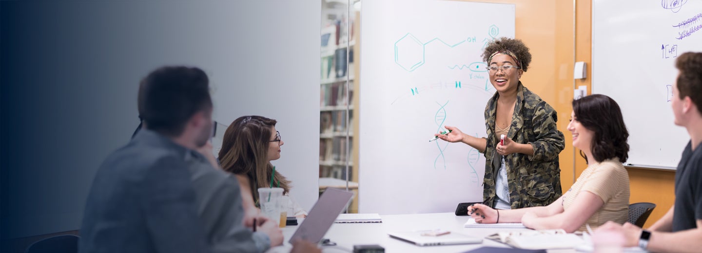 This program will ensure you're prepared to become a licensed teacher, with a focus on chemistry. You'll explore creative ways to make science interesting, relevant, and fun to fuel students' curiosities and inspire their interest in the change of matter and substances, atoms, molecules, and more.